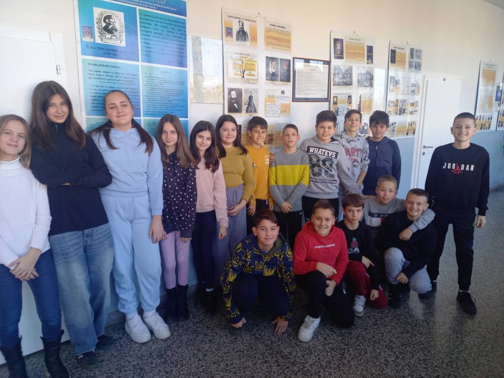 У холу наше школе је постављена изложба о Вуку С. Караџићу.  Аутор изложбе је господин Јеленко Бојић са којим смо сарађивали и претходних мјесеци.